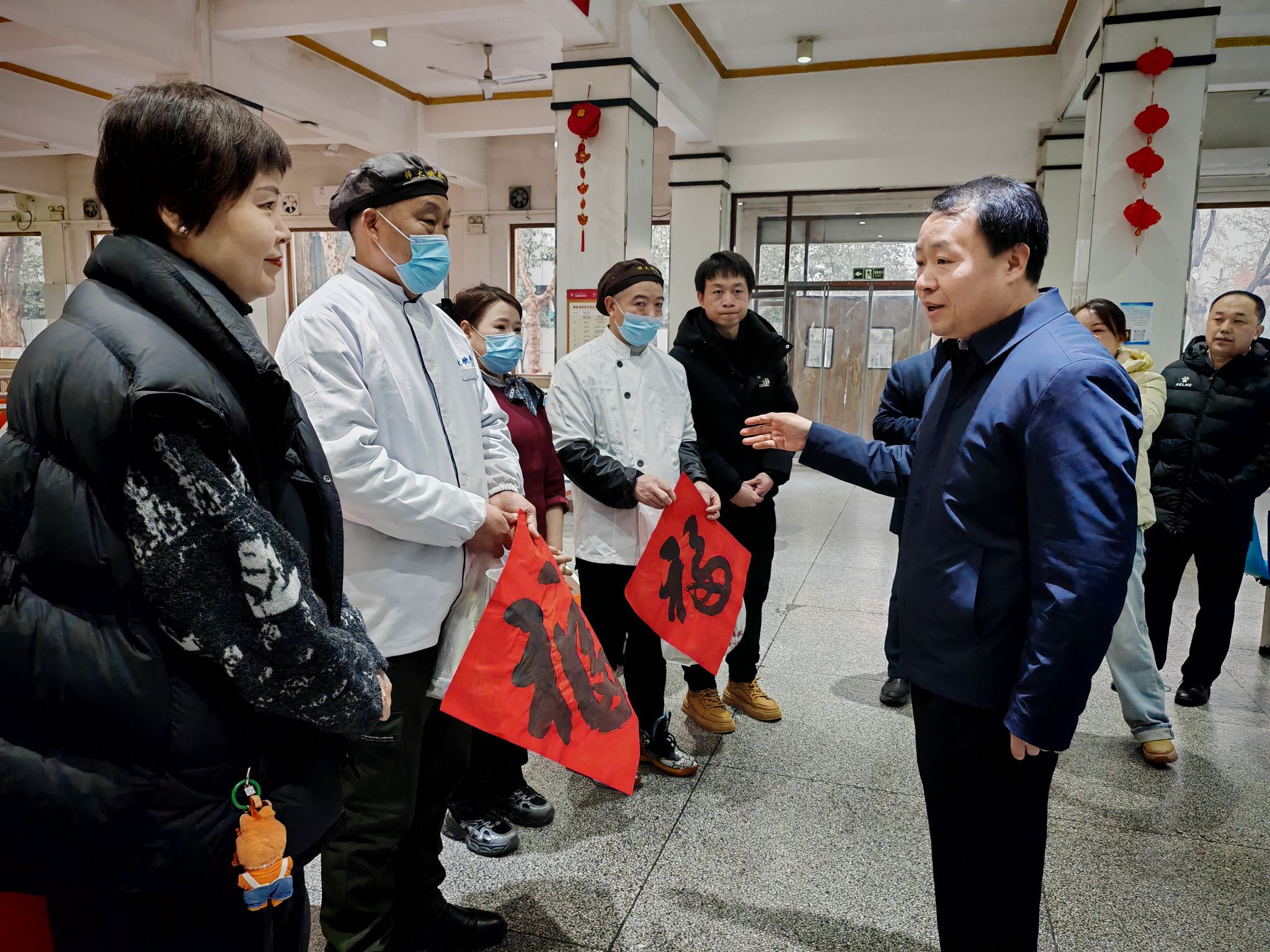 2月16日,在除夕当天,副校长王云博带队深入雁塔、长安校区检查假期安全稳定工作并看望慰问春节期间坚守岗位、奋战一线的值班人员、保卫人员和后勤服务人员,代表学校向他们致以节日的问候和新春的祝福。